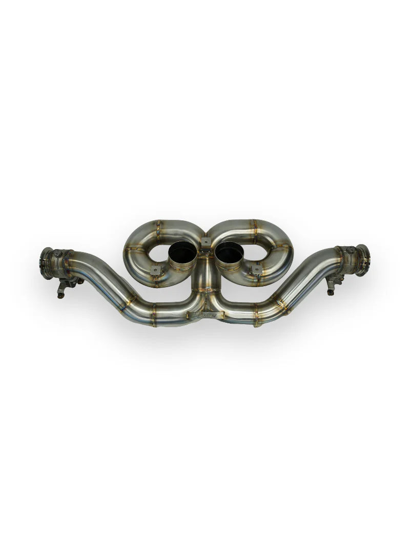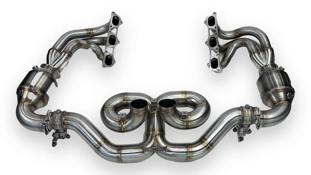Introducing the Gintani Porsche 992 GT3RS Exhaust System, engineered for unparalleled performance and sound enhancement. Crafted in the USA with precision, this system features stainless steel headers, high-flow catalytic converters, and a valved X-pipe rear section. Experience customizable exhaust tones with valves controlled by the OEM factory actuator, all built in house using 304 stainless steel and meticulously hand TIG welded for exceptional quality and longevity. Elevate your driving experience with the Gintani exhaust, where power meets precision.